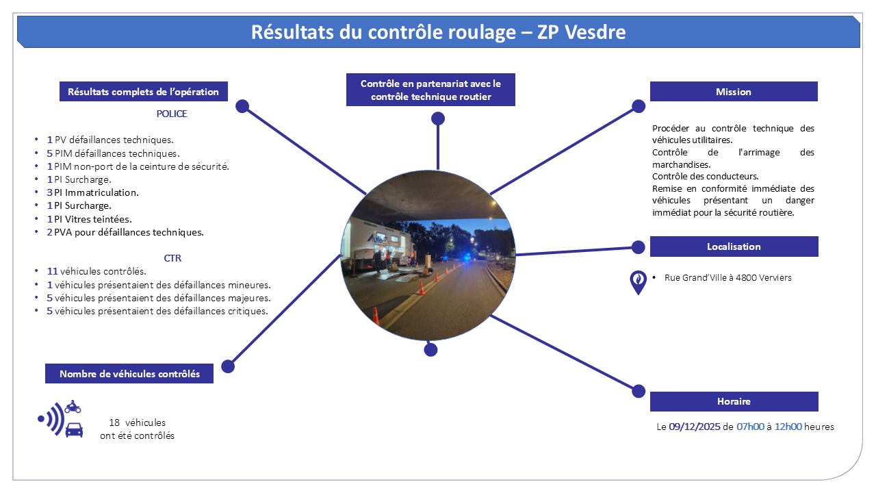 Contrôle technique routier du 9 décembre – résultats Galerie Contrôle technique routier du 9 décembre – résultats Circulation Contrôle technique routier du 9 décembre – résultatsjulie.leloup@police.belgium.eu2025-12-11T21:59:15+01:00Circulation|